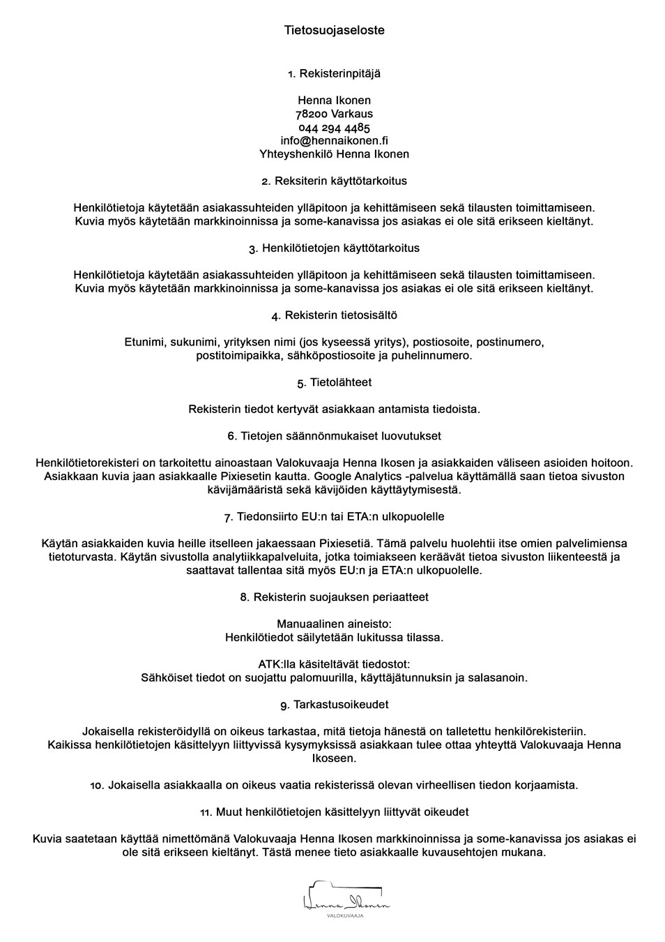 Ota yhteyttä niin keskustellaan tarkemmin millaisia kuvia toivot ja varataan Sinulle sopiva kuvausaika.